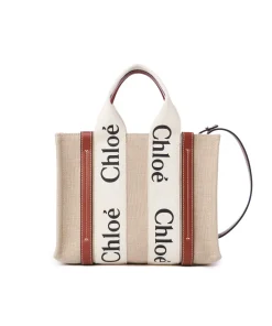 Chloé Small Woody Tote Bag – Linen Canvas & Calfskin Crossbody