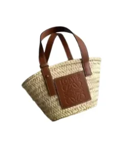 Loewe Artisan-Woven Small Anagram Basket Bag: Palm Leaf & Luxury Calfskin Carryall