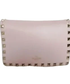 Authentic Light Pink Valentino Garavani Rockstud Leather Shoulder Bag