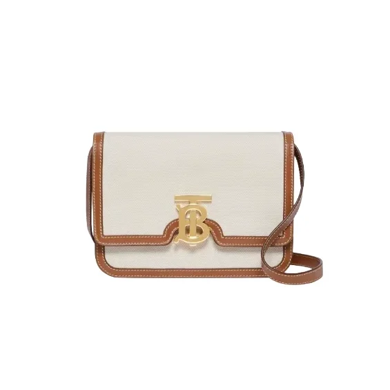 Burberry Small TB Canvas and Leather Shoulder Bag with Monogram Clasp