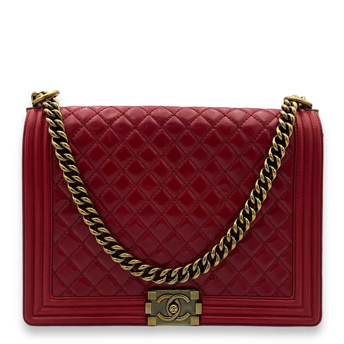 Discover the perfect blend of luxury and modern design with the Chanel Large Boy Bag in Calfskin. Crafted from luxury leather with elegant gold-tone hardware, this shoulder bag displays confidence and style. Its quilted exterior and structured shape create a timeless yet contemporary look, while the roomy interior ensures you can comfortably carry your essentials.