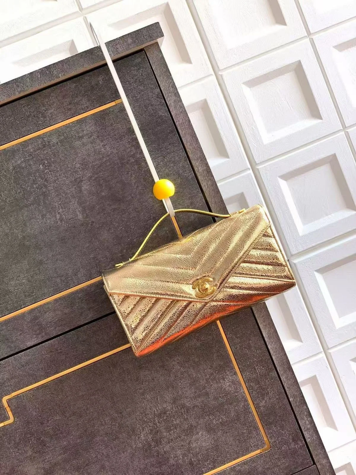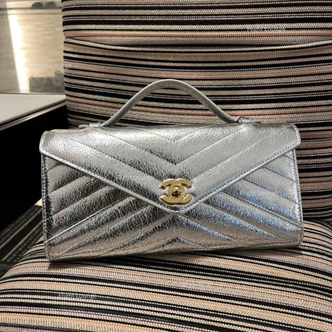 Designed with a structured shape and a short top handle, this clutch is perfect for evening events, formal occasions, or refined day-to-night styling. The bag is offered new with tags and comes as a full set, including the original box and dust bag, making it ideal for collectors and CHANEL lovers.