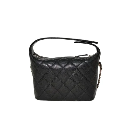 CHANEL Black Caviar Quilted Hobo Clutch with Chain