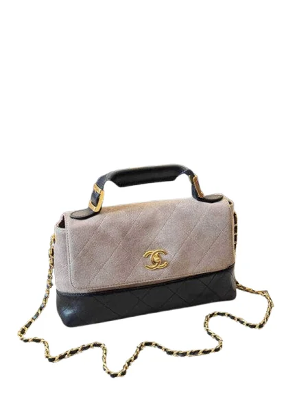 The Chanel Coco Base Top Handle Flap Bag is a refined luxury handbag that combines iconic Chanel craftsmanship with practical everyday functionality. Crafted from high-quality suede calfskin leather with a quilted shiny lambskin leather base, this bag offers a refined texture contrast that feels both modern and timeless.