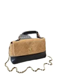 Chanel Coco Base Top Handle Flap Bag in Suede and Lambskin Leather