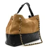 Chanel Suede Calfskin Quilted Shopping Bag – Beige & Black Leather Tote