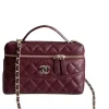 The Chanel Trendy Top-Handle Vanity Case is a stylish yet practical accessory designed for women who love luxury fashion. Its structured vanity case design, top handle, and chain shoulder strap make it perfect for both everyday use and special occasions.