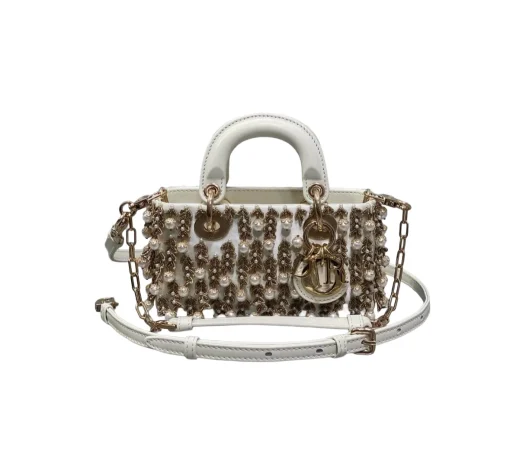 The Dior Lady D-Joy Pearl leather bag is designed for women who appreciate refined fashion with a modern twist. Made from luxury lambskin leather and finished with champagne-gold hardware, this mini handbag instantly elevates both casual and formal outfits.