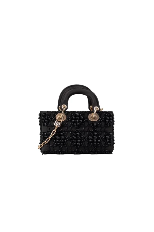 Dior Mini Lady Dior Black Beaded Satin Bag – Luxury Crystal Cannage Crossbody Handbag
