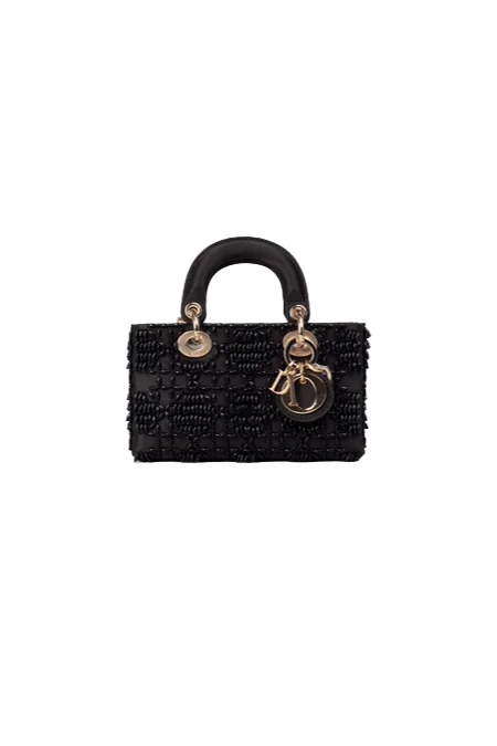 Dior Mini Lady Dior Black Beaded Satin Bag