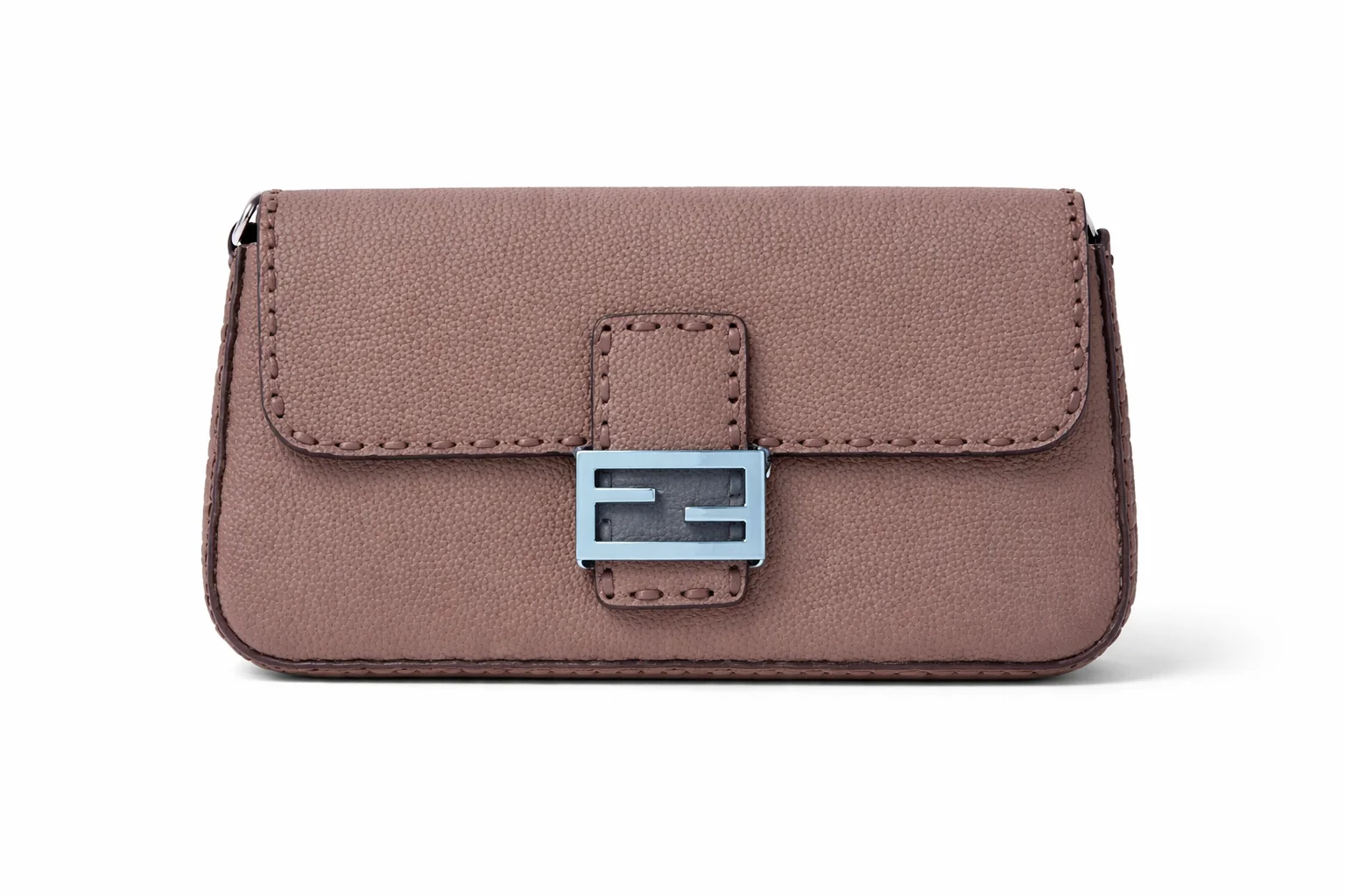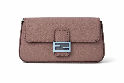 This Fendi Baguette Selleria comes in a beautiful taupe shade with subtle plum undertones, giving it a refined, modern edge over traditional brown bags. The color shifts slightly in light, creating a rich, dimensional look that feels both elegant and unique.