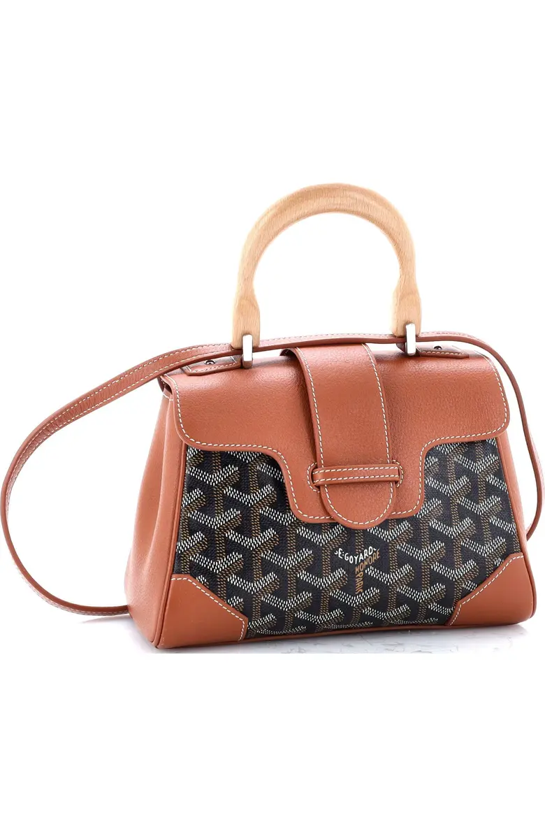 Goyard Saigon Souple Mini bag: Designer-Style Top Handle Bag with Signature Pattern and Wooden Handle