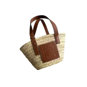 Handwoven Palm Leaf Basket Bag with Calfskin Handles