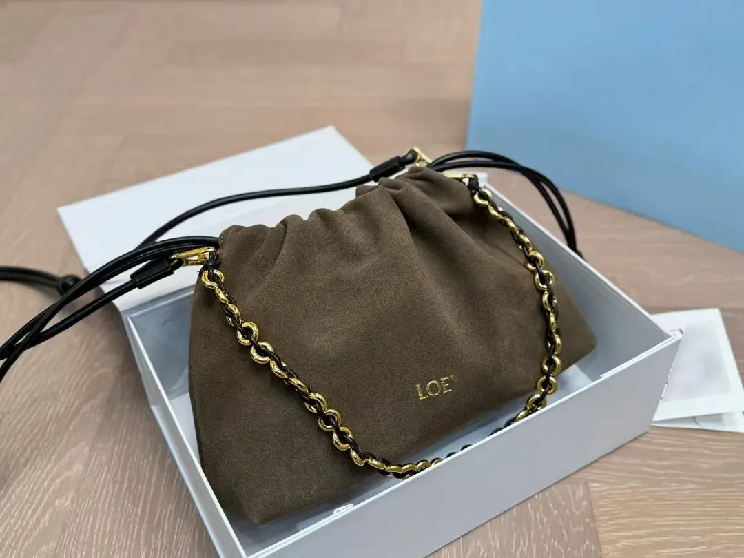 Loewe Suede Chain Shoulder Bag – Luxury Small Designer Handbag for Daily & Evening Use