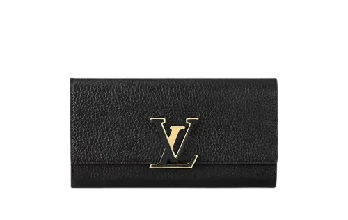 The Louis Vuitton Capucines Wallet in black Taurillon leather is the ultimate blend of charm and practicality. Crafted from supple, high-quality leather and finished with a leather-covered LV signature and golden hardware, this wallet exudes timeless luxury while remaining durable for daily use.