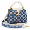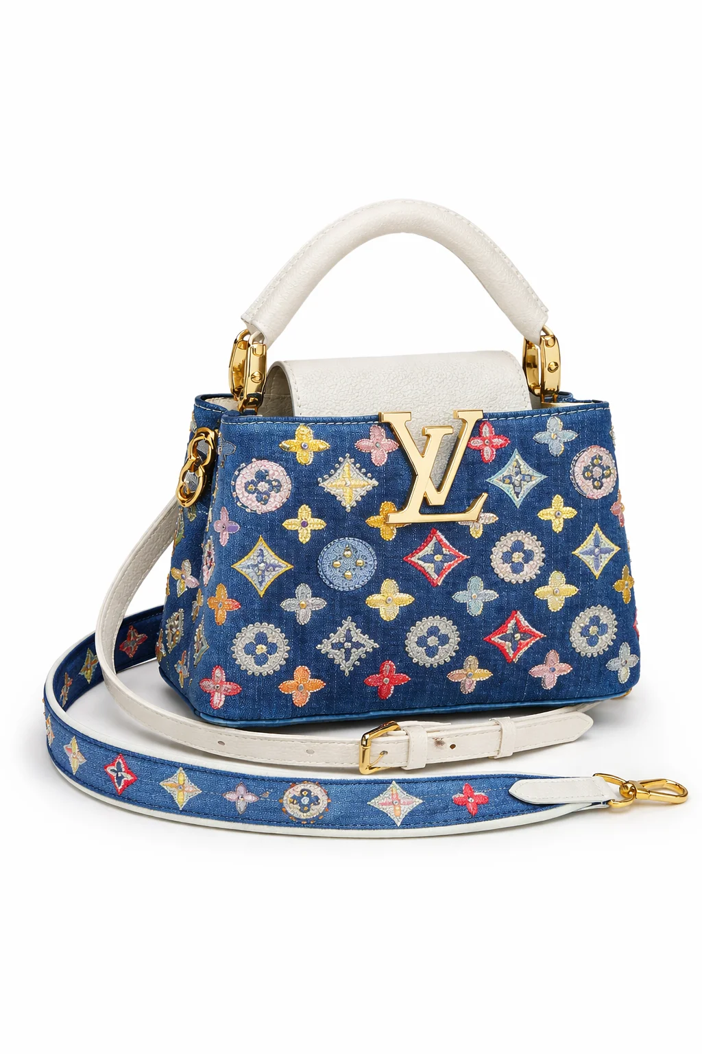 Louis Vuitton Capucines Medium To Mini Multicolor Monogram Bag — Denim or Leather, Top-Handle Luxury