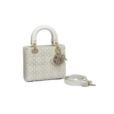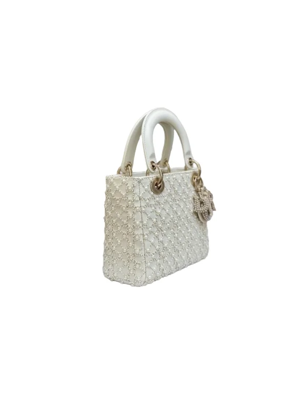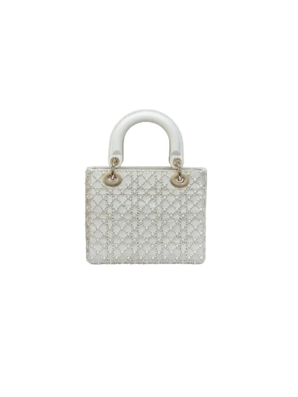 Christian Dior White Crystal Studded Lady Dior Small Bag – Lambskin Designer Handbag